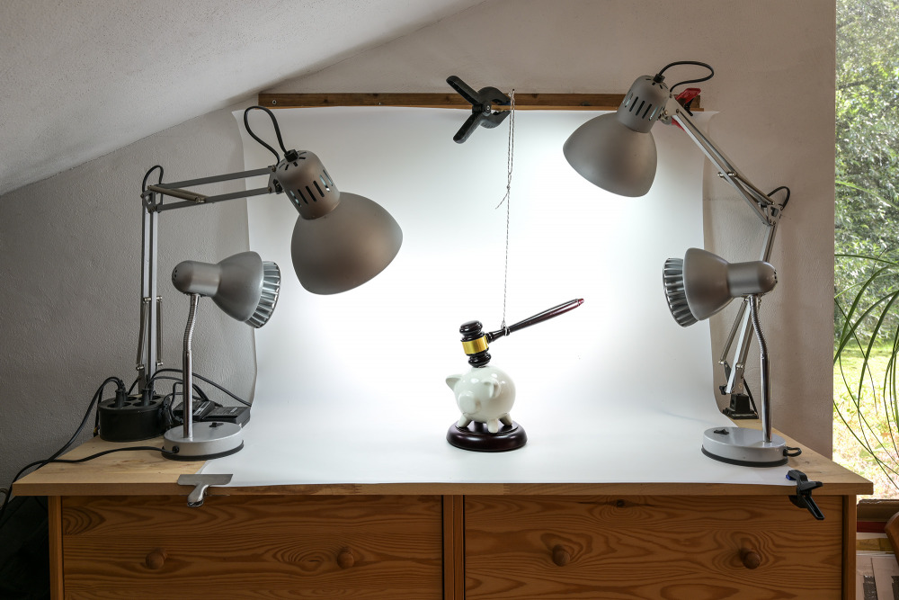 Für kleinere Tabletops reicht im Prinzip eine horizontale Fläche an einer Wand und Licht.